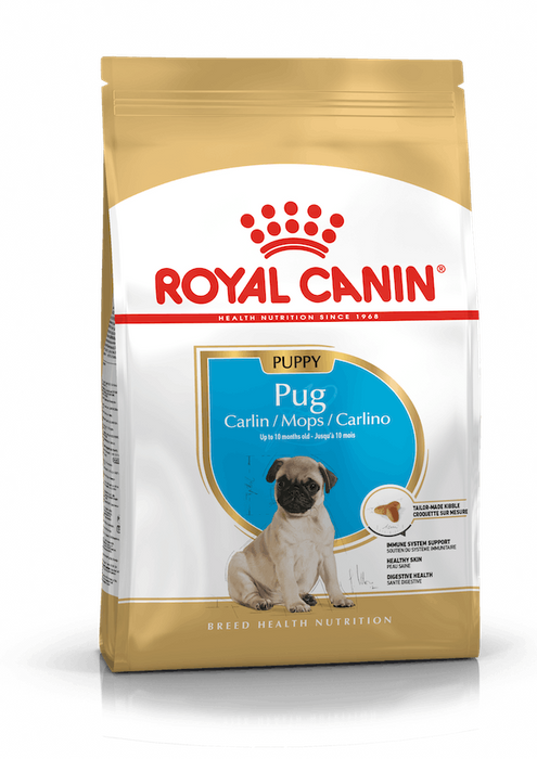Suitable for Pugs up to 10 months old, ROYAL CANIN® Pug Puppy is specially formulated with all the nutritional needs of your puppy in mind. Complete feed for dogs - Specially for Pug puppies - Up to 10 months old.