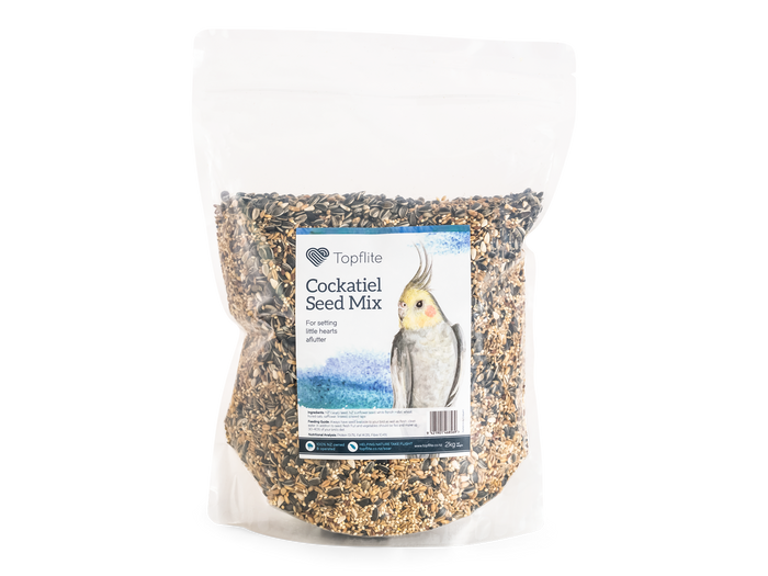 Our Cockatiel Mix is a high-quality blend of natural ingredients, including white French millet, which provides a variety of essential minerals. We also include New Zealand sunflower seeds and canary seeds to deliver fats and protein throughout the seasons.