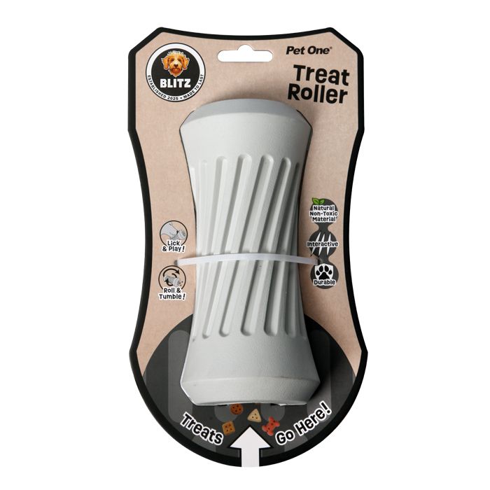 - Pet One Dog Toy - Blitz Rubber Treat Roller Grey L