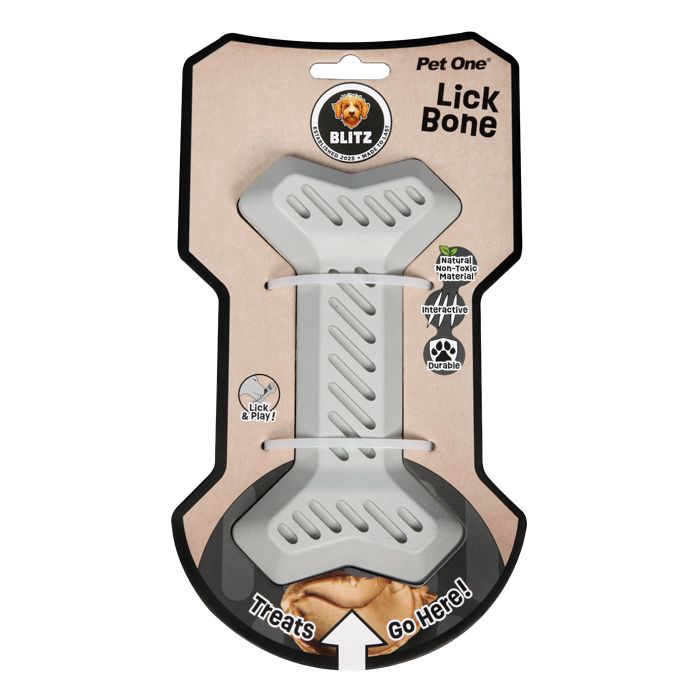 - Pet One Dog Toy - Blitz Rubber Lick Bone Grey L