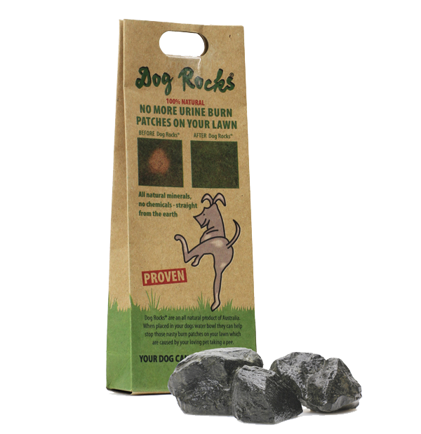 Dog Rocks are a 100% Natural Australian product that will save your lawn from those nasty burn patches that your Dog’s urine can cause. Dog Rocks® filter out impurities from water such as Tin, ammonia and nitrates. These impurities are usually passed out through urine, and when grass comes in contact with these elements it results in urine burn on grass, resulting in a dead, yellow patch on your lawn.Dog Rocks give your four legged friend a cleaner source of water, while eliminating urine burn on grass this will result in the stop of those nasty burnt yellow patches on your lawn. Without the impurities in the water, Dog Rocks actually help your dog fertilize your lawn! This is great for you, your dog & your lawn!