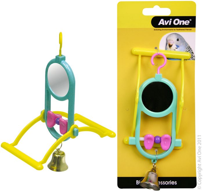 - Avi One Bird Toy - Round Mirror with Geometric Beads
